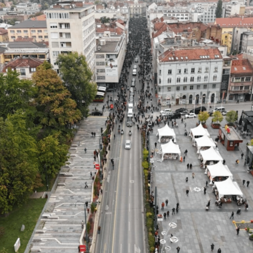Following the ceremony, the funeral prayer (dženaza) was held at the Gazi Husrev-beg Mosque, led by religious officials. The surrounding streets of Baščaršija fell silent as thousands joined in prayer, before the procession continued through Ferhadija Street toward Bare Cemetery, where Bešlić was laid to rest beside his family.