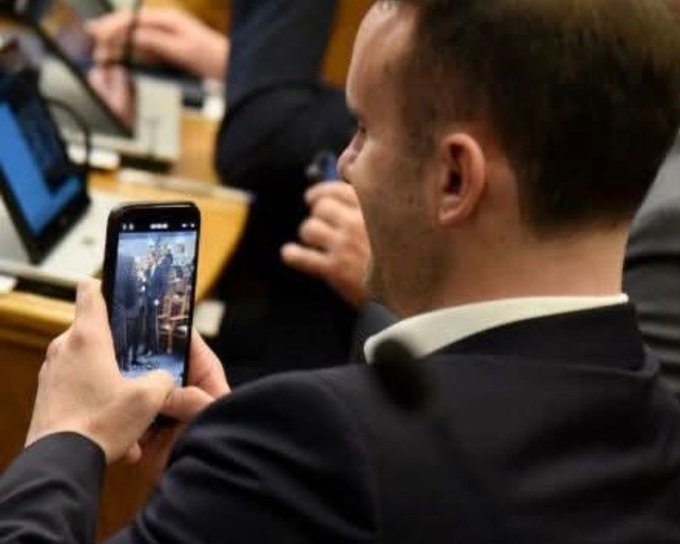 Democratic Party of Socialists MP Ivan Vuković posted a photo on social networks X and Instagram, showing Prime Minister Milojko Spajić filming the moment when opposition parties did not allow the Prime Minister's Hour to be held.
