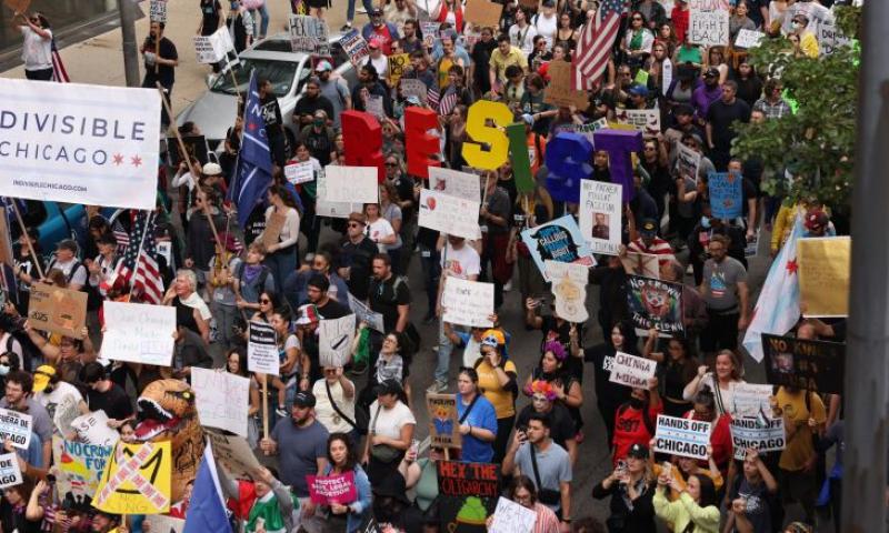 Downtown Chicago became the center of a massive demonstration on Saturday as tens of thousands of people joined the “No Kings” protest, part of a nationwide movement opposing what participants describe as growing authoritarianism under President Donald Trump.