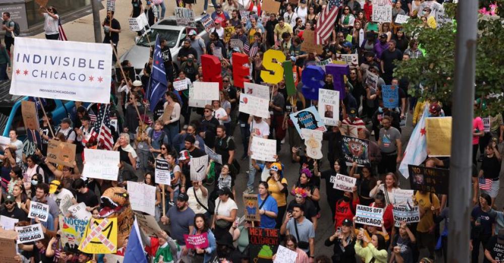 Downtown Chicago became the center of a massive demonstration on Saturday as tens of thousands of people joined the “No Kings” protest, part of a nationwide movement opposing what participants describe as growing authoritarianism under President Donald Trump.