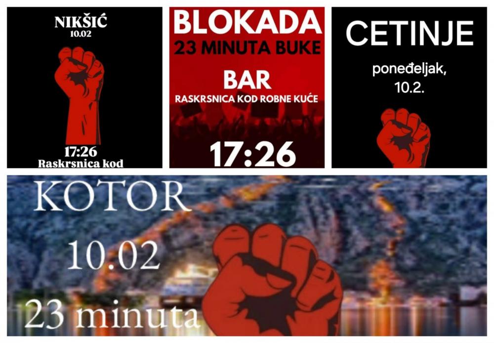 The people of Bar will block the intersection near the Department Store for 23 minutes at 5:26 p.m. today, while the people of Nikšić have scheduled "23 minutes of noise" at the intersection in front of the Municipality building.