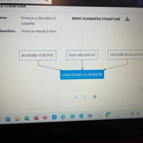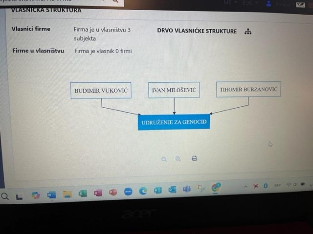 What can be found by internet search is that the NGO "Association for Genocide" was founded on 10.12.2019, and that the owners are Ivan Milošević, Tihomir Burzanović and Budimir Vuković. It also says that the "Association for Genocide", besides having owners, has no employees, nor an annual financial report.