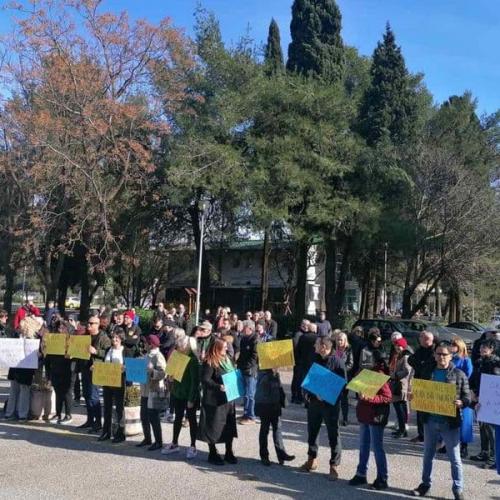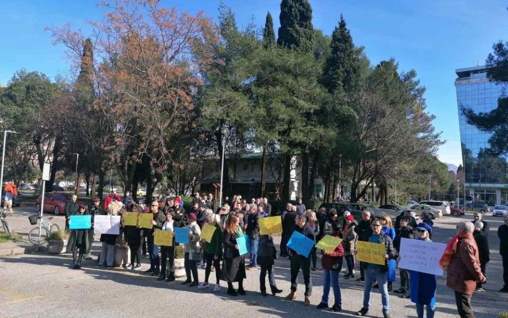 A group of citizens of Podgorica gathered today on the plateau in front of the RTCG building to express a protest regarding, as they announced earlier, the attitude of the management of the Public Service towards the basic right of journalists to express themselves freely in their own language, which is guaranteed to them by the Constitution and laws of the state.