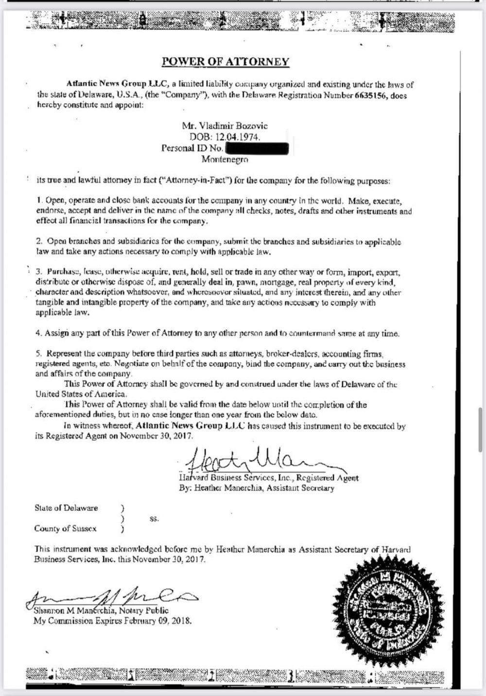 Atlantic News Group LLC. Registered in the US Tax Paradise Delaware, then he stated that he had portal IN4S, portal “ bORBA.ME”,and the print media "Sloboda".
