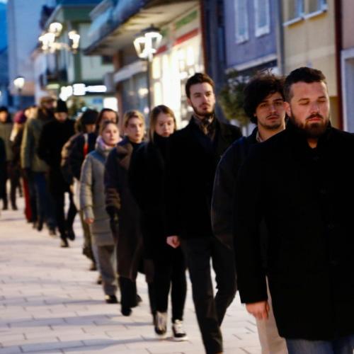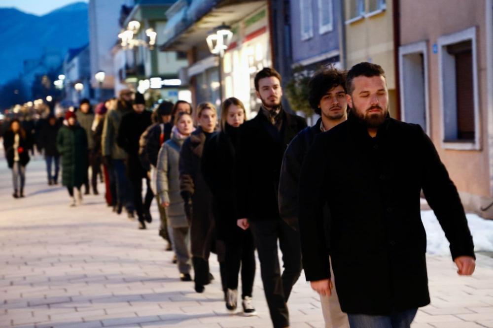After the gathering was addressed by representatives of Cetinje cultural and educational workers, and representatives of the student organization "Kamo Śutra", the protest procession set off in silence to the police station in Cetinje.