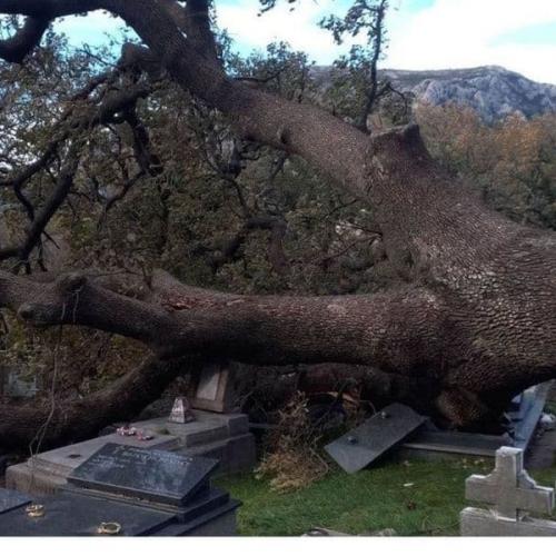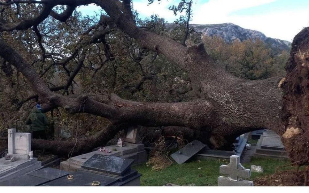 Powerful northern nets ceases from last night, he pulled out of the roots of the multifacet oak at the Grave Double Carnut Church of the Holy Tekla in Sutomore.