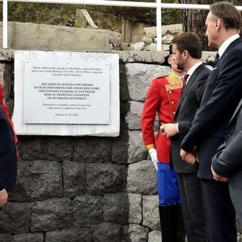 Memorial plate on the building where DUBROVNIKA and tortured Croatian civilians and defenders during 1991 and 1992, on October 10, discovered the then Montenegrin Ministers of Defense and Foreign Affairs, Ranko Konjemic and Ranko Krivokapić in the presence of high Croatian officials.
