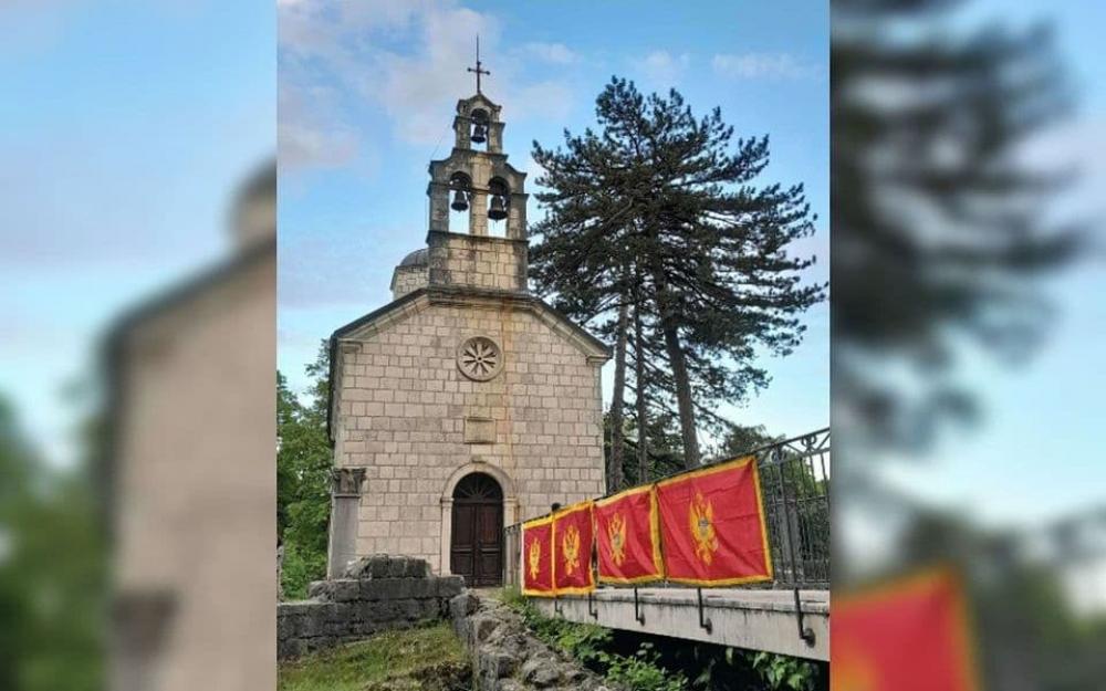 After unknown perpetrators took away six state flags that were hung on the fence in front of the Church of the Virgin in Ćipur, Cetinje, four new ones were placed.