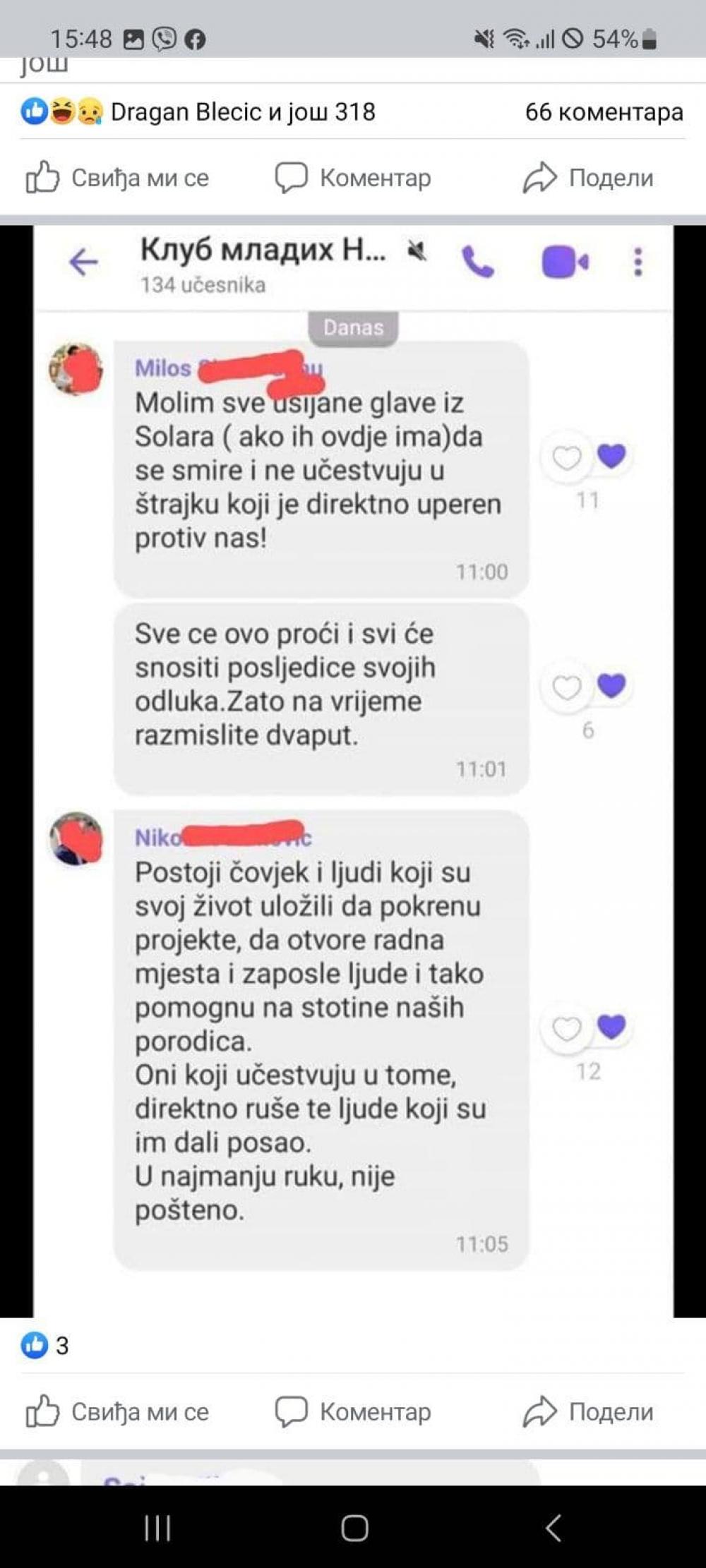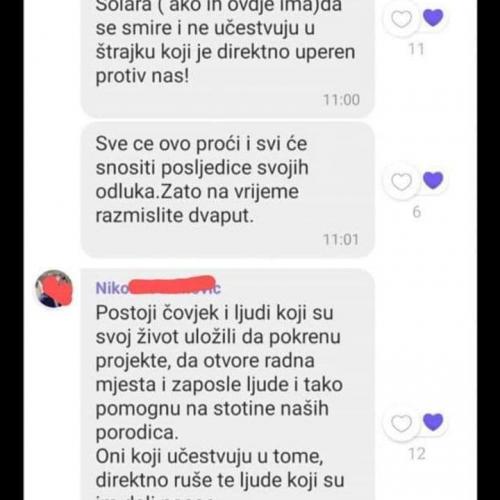 In the part of the alleged correspondence from the Group of the Youth Club, a certain Miloš asked "all the hot heads from Solar to calm down and do not participate in the strike," who, as he says, directly against them.
