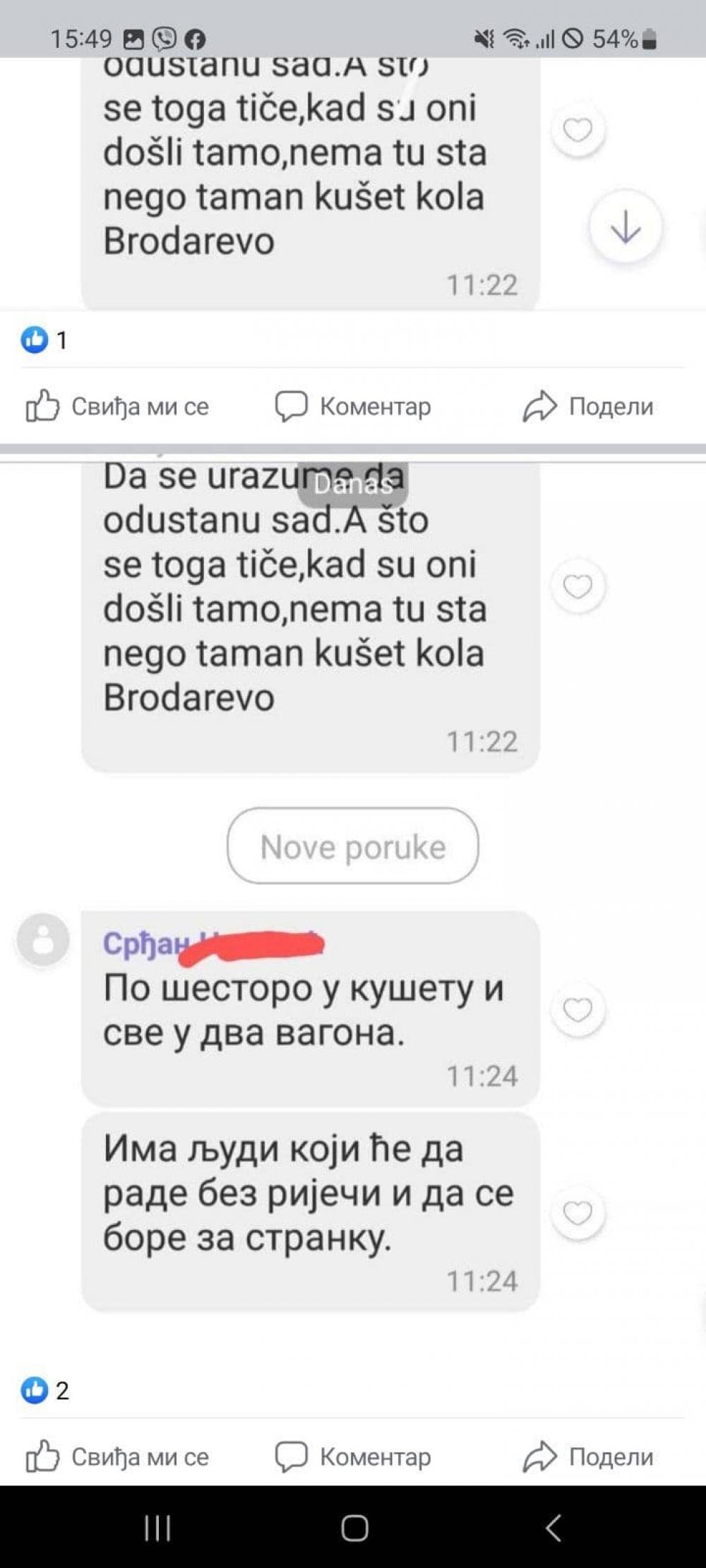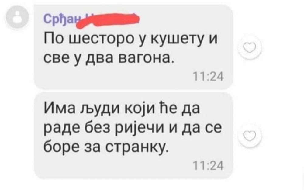 Srdjan wrote in the correspondence, which he wrote: "On six in the taste and all in two wagons. There are people who will work without words and to fight for the party. "