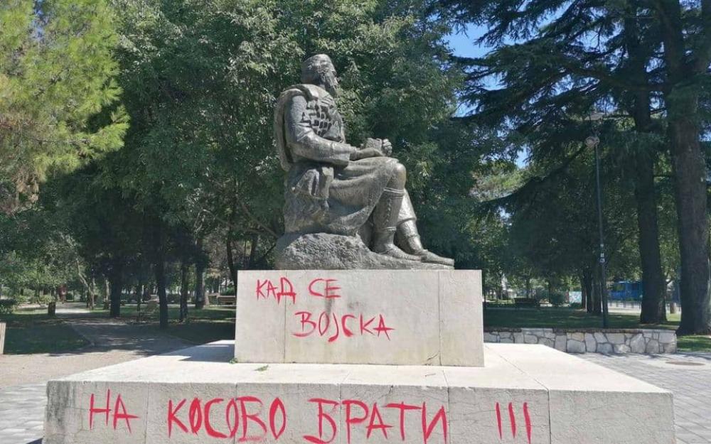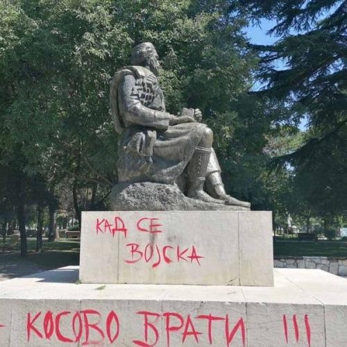 Another wartime graphite "When the army in Kosovo is returned" in Podgorica, this time on the stand of its monument in the city center.