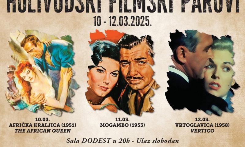 U okviru revije „Holivudski filmski parovi” koju filmski program KIC-a „Budo Tomović” organizuje od 10. do 12. marta, biće prikazani najpoznatiji filmski klasici koji su ostali upamćeni i koji su uvijek rado gledani upravo zbog postojanja nesvakidašnje povezanosti između glavnog glumca i glumice u određenom filmu.