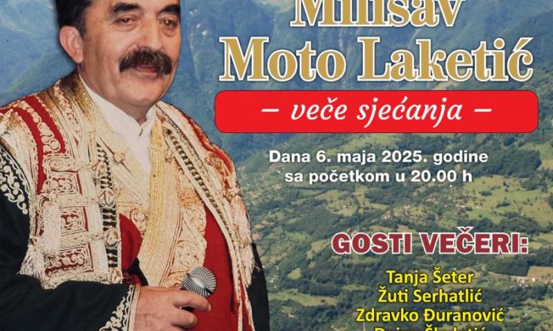 Koncert crnogorskih pjesama posvećen Milisavu Motu Laketiću biće organizovano 6. maja 2025. godine u 20 sati u KIC-u “Budo Tomović”.