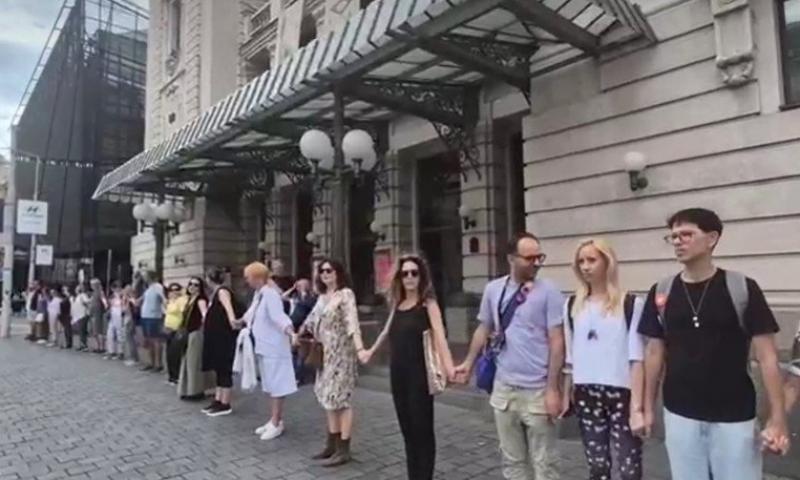 Zaposleni Narodnog pozorišta u Beogradu i njihove kolege iz drugih teatarskih kuća iz cijele Srbije okupili su se na Vidovdan da bi zagrlili svoju kuću i na taj način pokazali da je vole i čuvaju njenu autonomiju, kao i da podržavaju studente.
