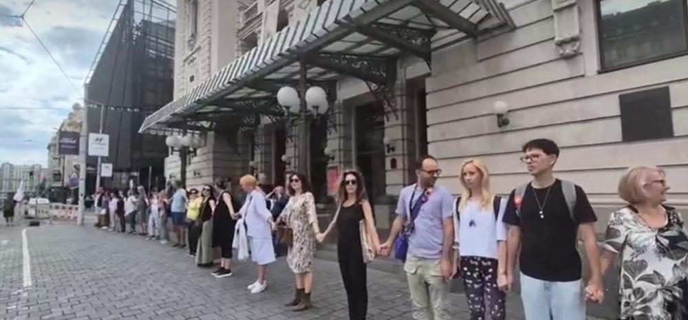 Oko 16 sati oni su pružili jedni drugima ruke i napravili krug oko zgrade NP.