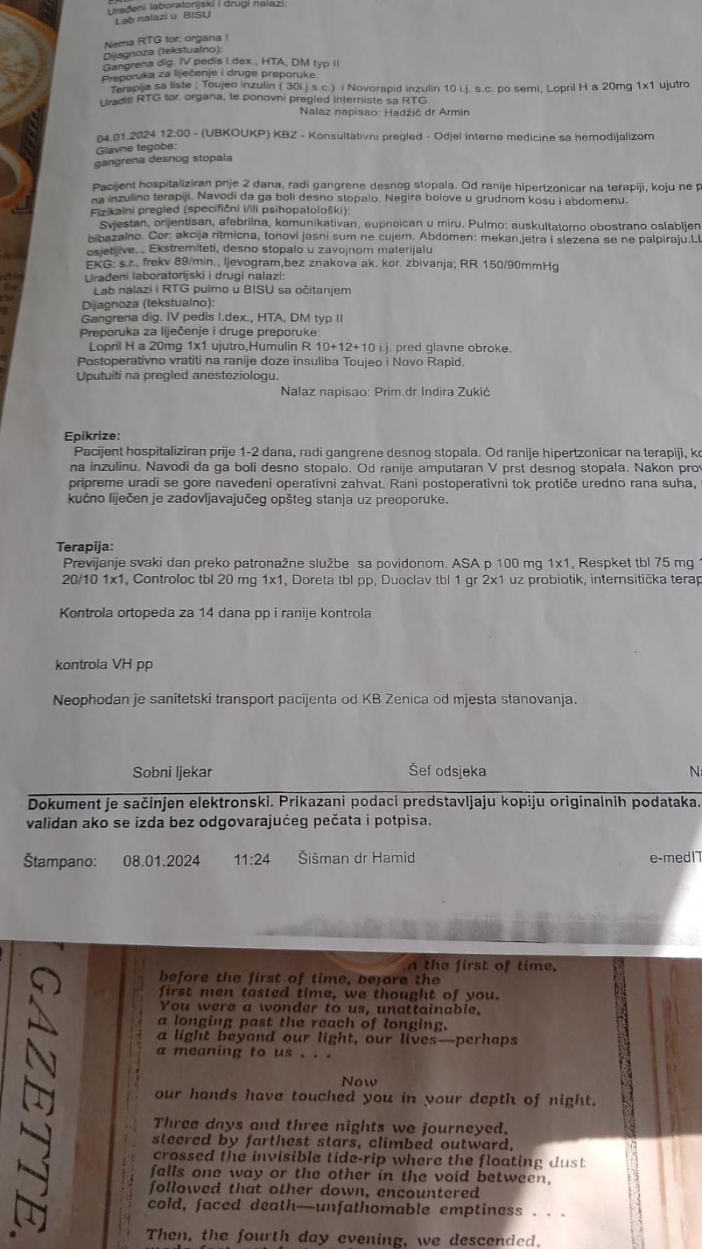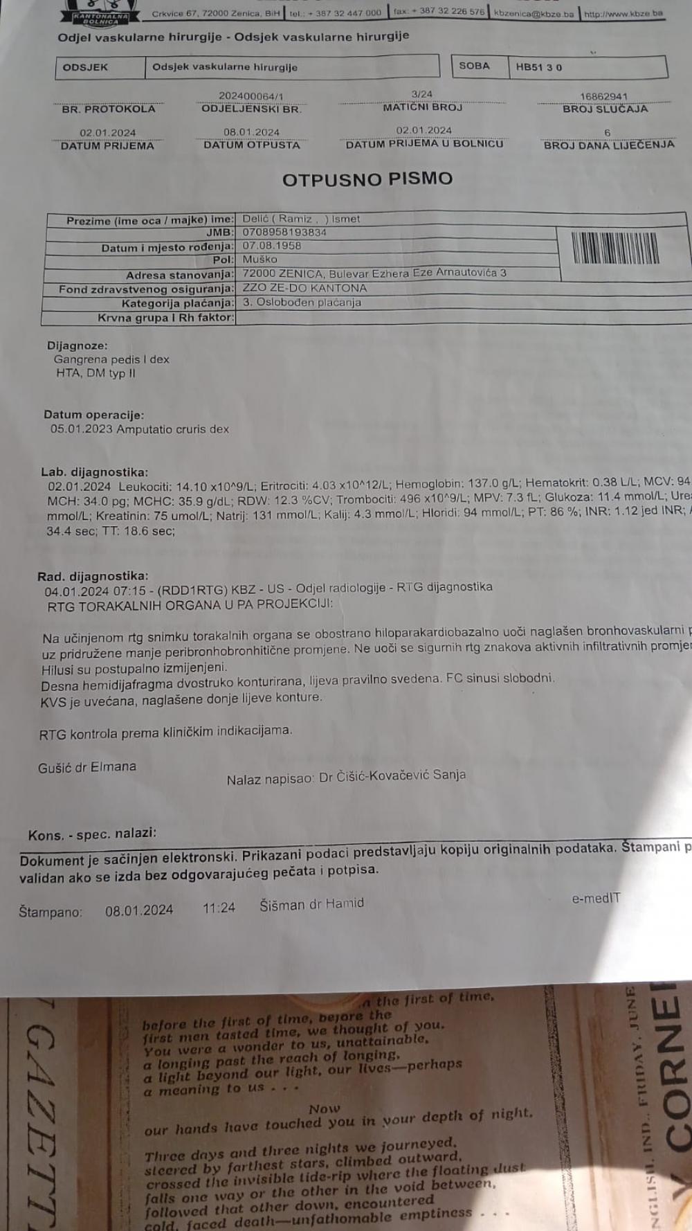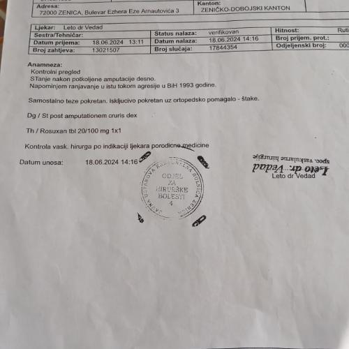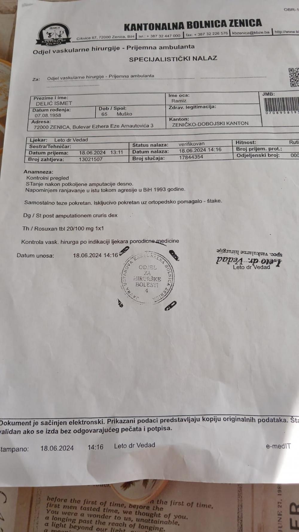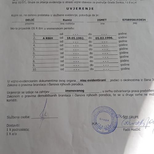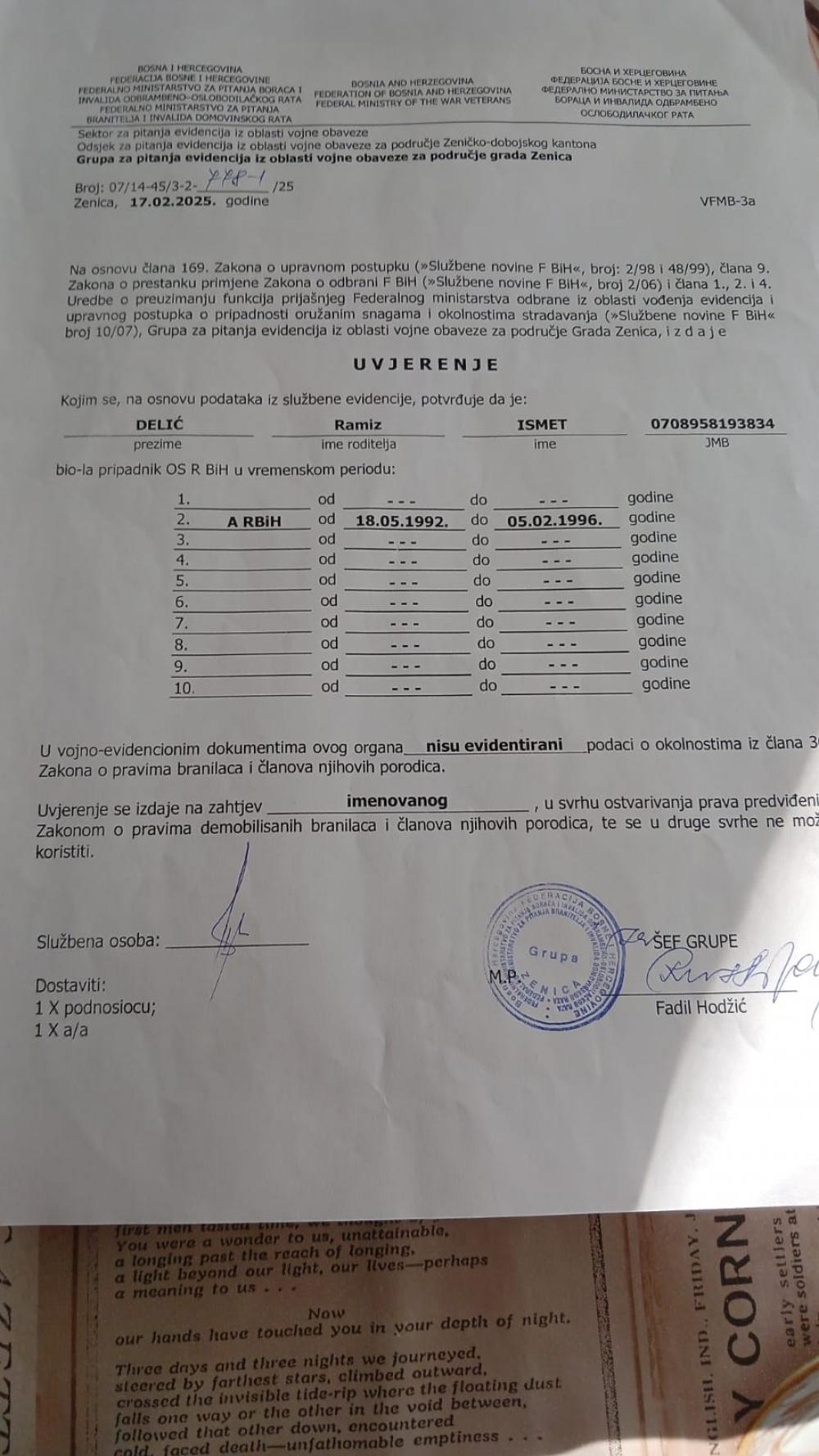 Delić Ismet iz Zenice već duže vremena bije bitku za svoja prava , koja mu osporavaju nadležne institucije Bosne i Hercegovine. Država za čiju je slobodu krvario pune četiri godine , danas osporava sva njegova pa i ona na goli život. Iako je aktivni učesnik oslobodilačkog- domovinskog rata u periodu od 18.05.1992. do 05.02.1996. , te kao posljedicu učešća u ratu trajno i teško mu je narušeno zdravlje, koje je uzrokovalo trajni i teški invaliditet. Zbog teškog oblika gangrene , Ismet je danas gotovo nepokretan i nije u stanju samostalno se o sebi starati . I pored posjedovanja kompletne dokumentacije institucije Bosne i Hercegovine odbile su više puta njegov zahtjev za tuđom njegom i drugim primanjima iz dijala socijalne zaštite.